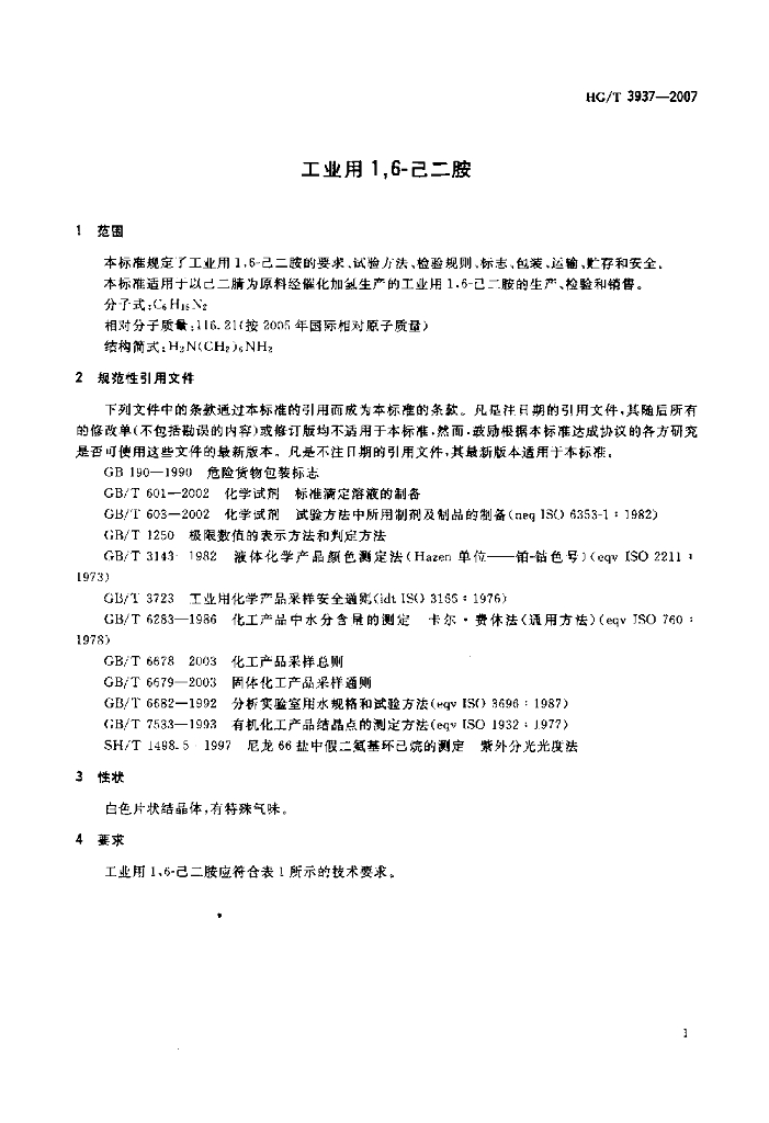 HG/T 3937-2007 工业用 1,6-己二胺