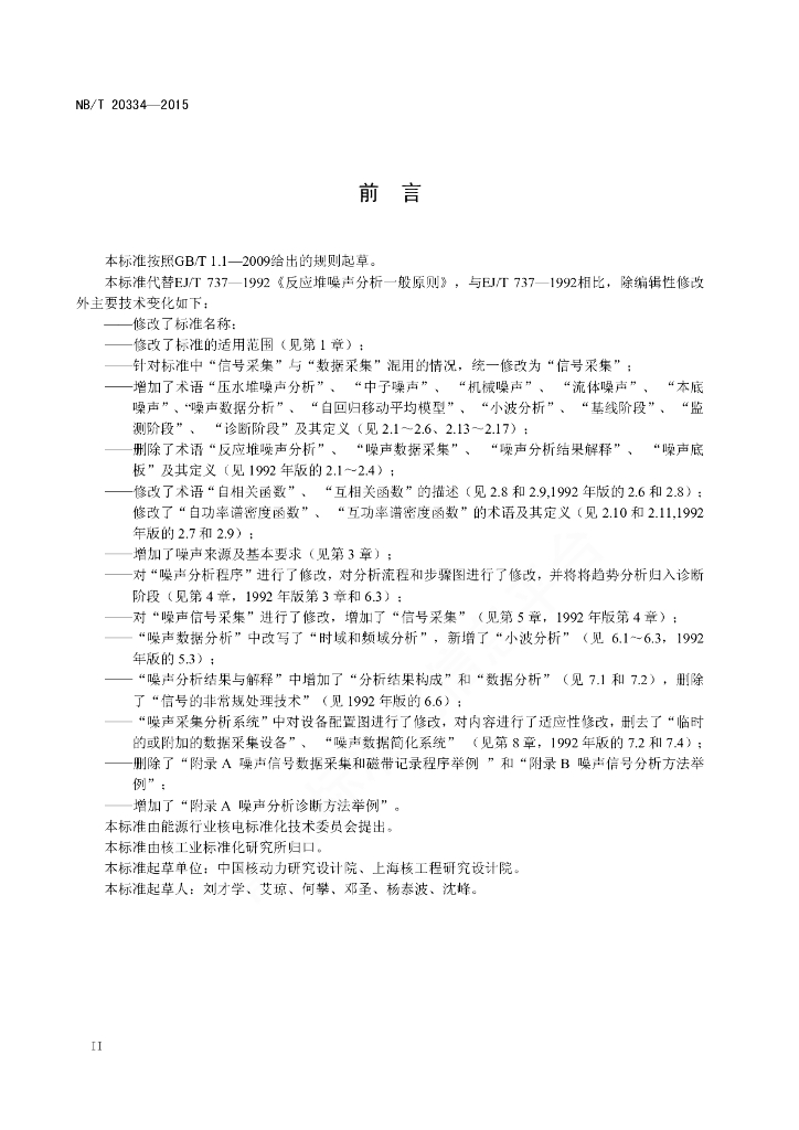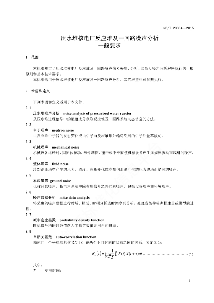 NB/T 20334-2015 压水堆核电厂反应堆及一回路噪声分析一般要求