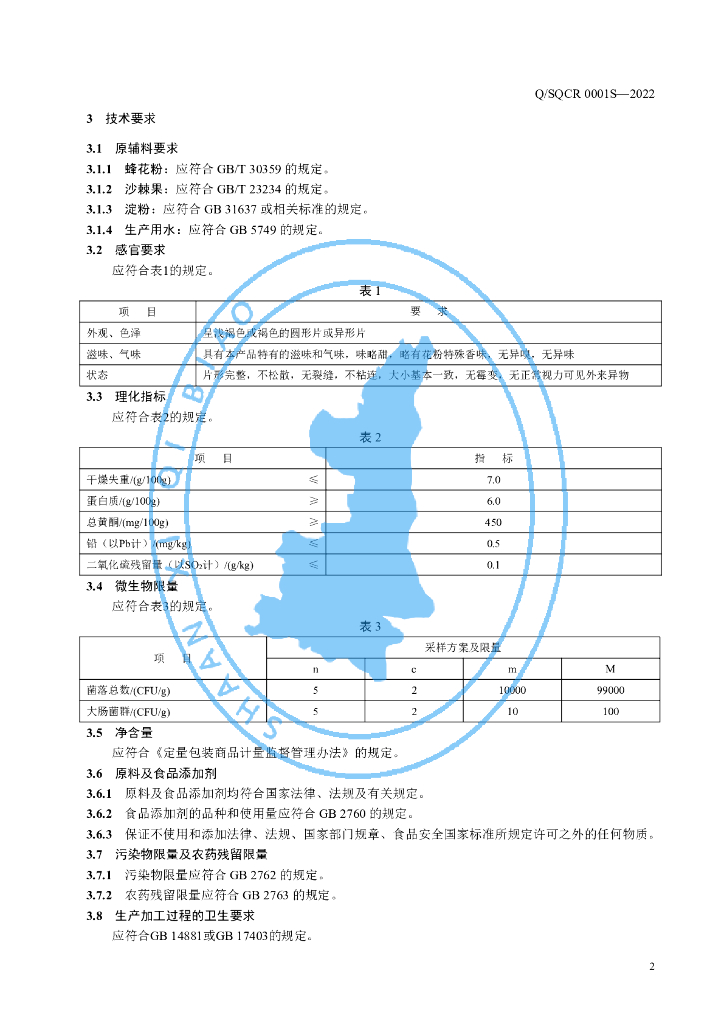 Q/SQCR 0001S-2022 花粉沙棘片(压片糖果)