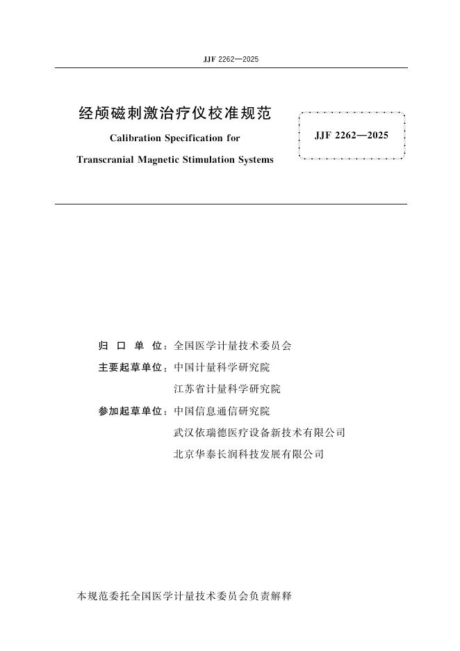 JJF 2262-2025 经颅磁刺激治疗仪校准规范