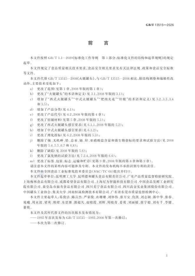 GB/T 13515-2026 火腿罐头质量通则