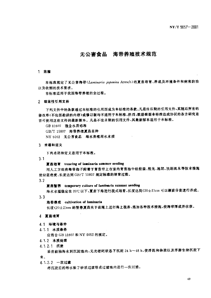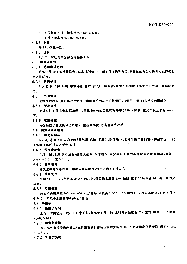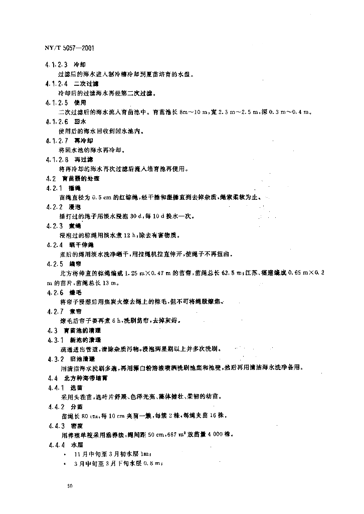 NY/T 5057-2001 无公害食品 海带养殖技术规范