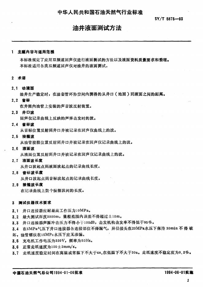 SY/T 5875-1993 油井液面测试方法