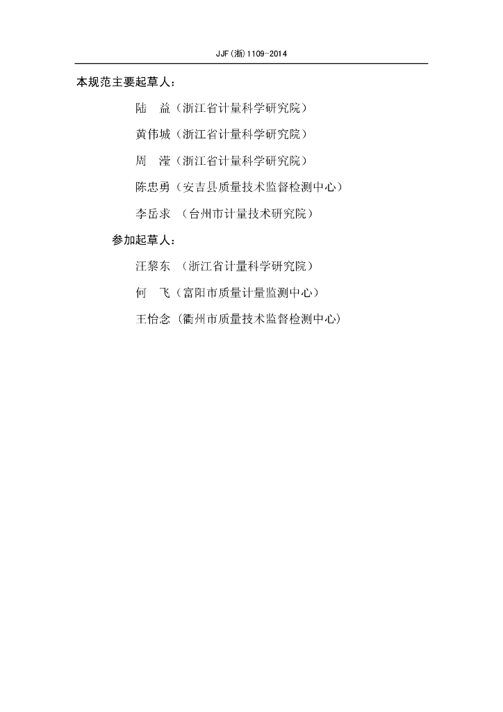 JJF(浙)1109-2014 砖用卡尺校准规范