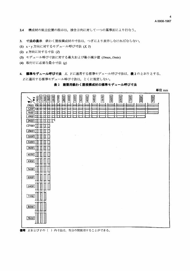 JIS A0008-1967 建筑用铁制框架屋顶构件的标准公称尺寸