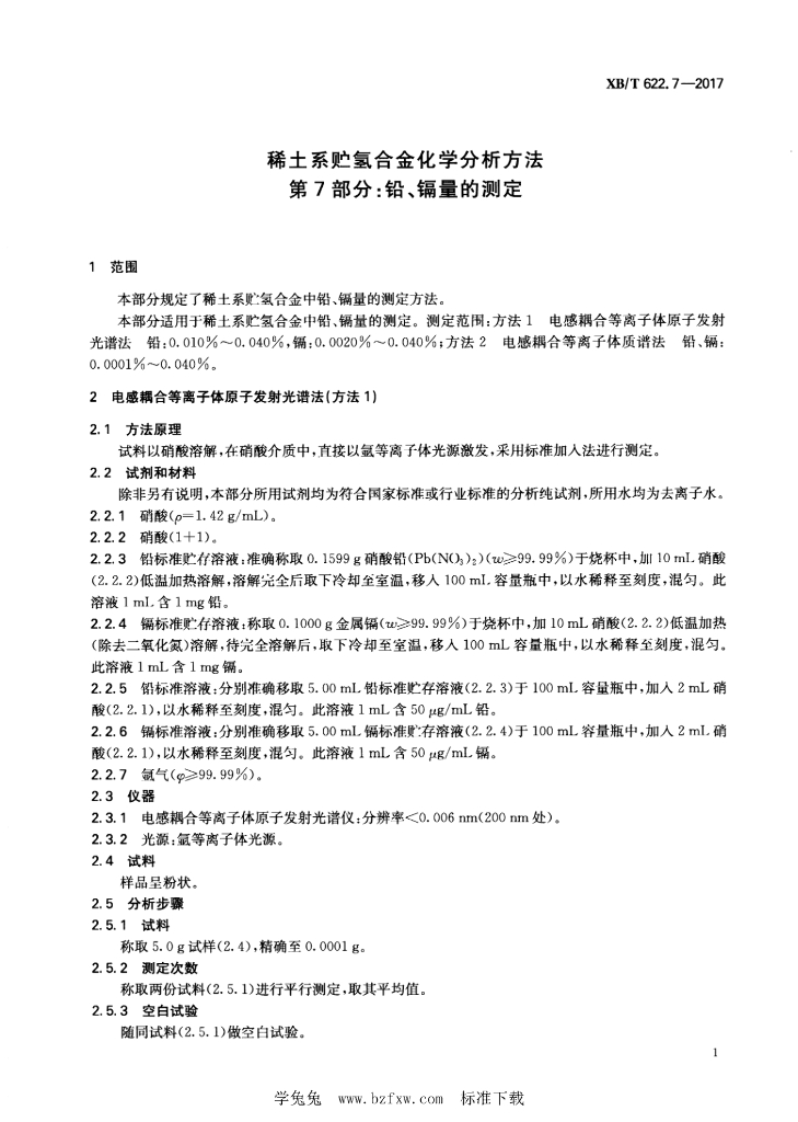 XB/T 622.7-2017 稀土系贮氢合金化学分析方法 第7部分:铅、镉量的测定