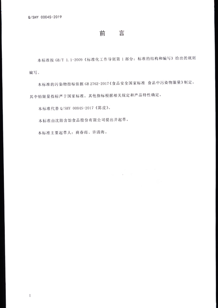 Q/SHY 0004S-2019 橘皮(陈皮)
