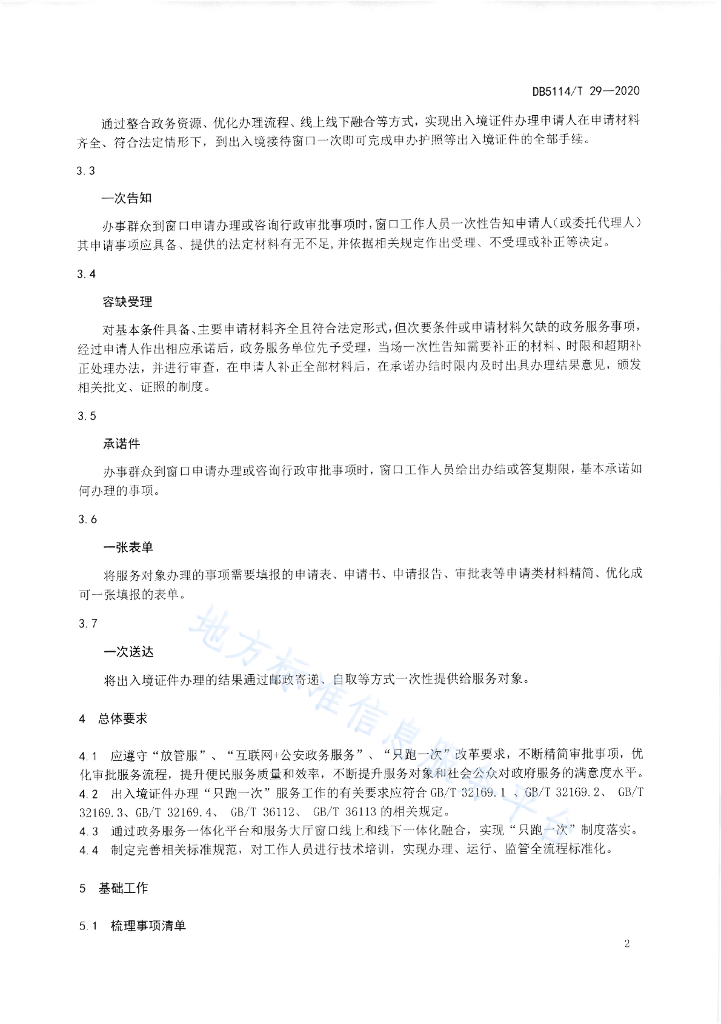 DB5114/T 29-2020 办理出入境证件"只跑一次"服务规范