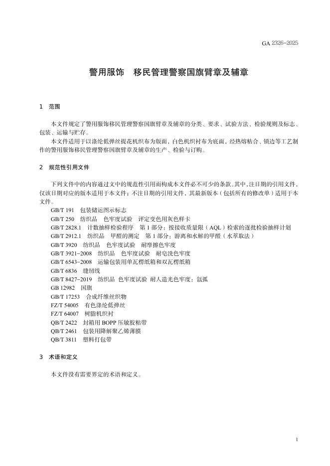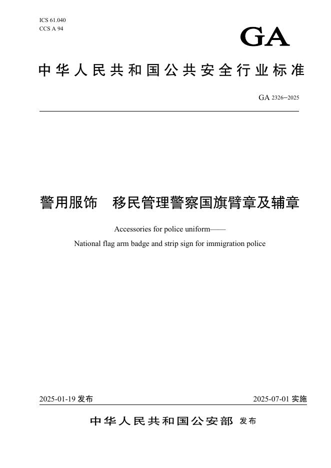 GA 2326-2025 警用服饰 移民管理警察国旗臂章及辅章