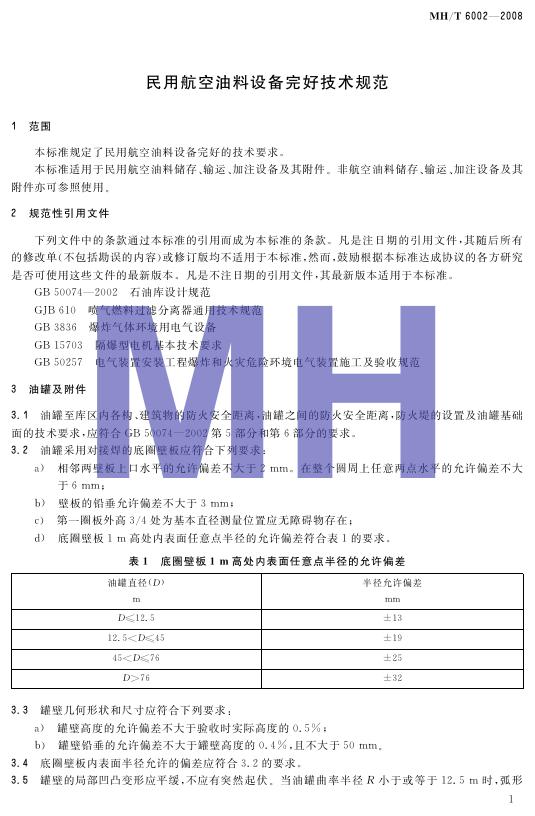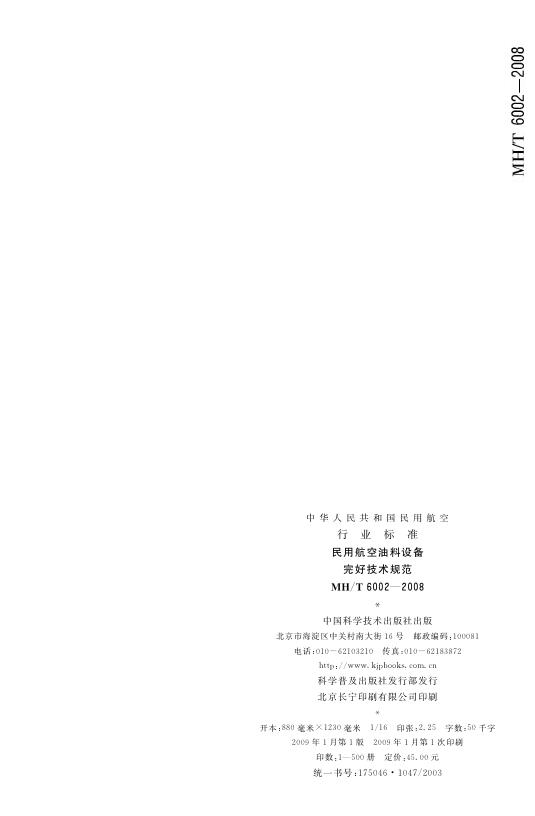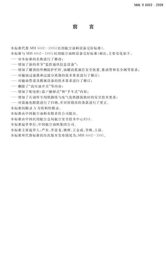 MH/T 6002-2008 民用航空油料设备完好技术规范