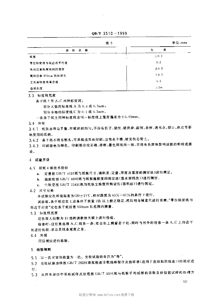 QB/T 3510-1999 Y311条粗条干仪用记录纸