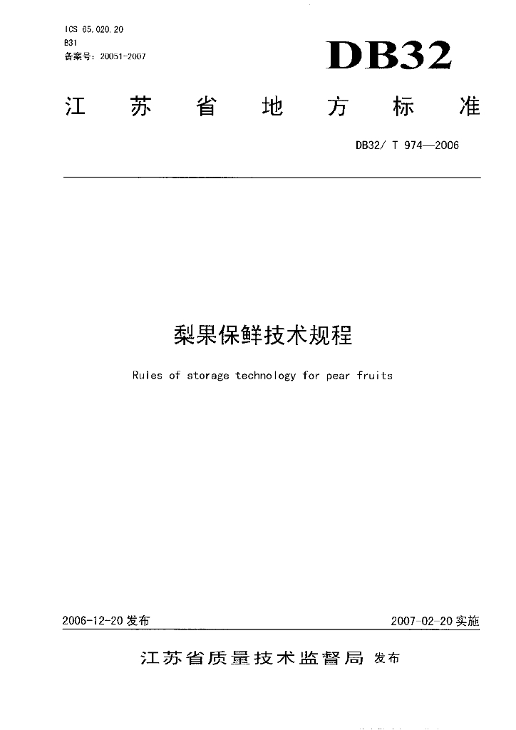 DB32/T 974-2006 梨果保鲜技术规程