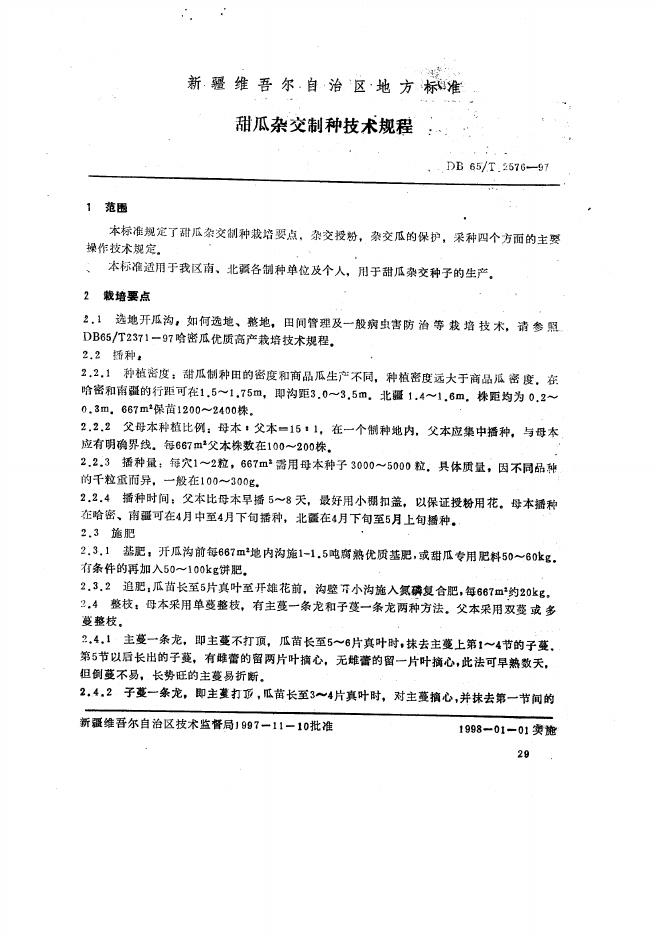 DB65/T 2576-1997 甜瓜杂交制种技术规程