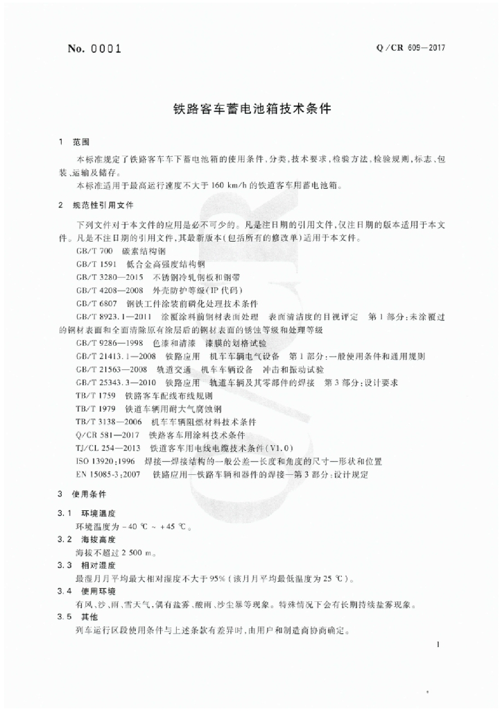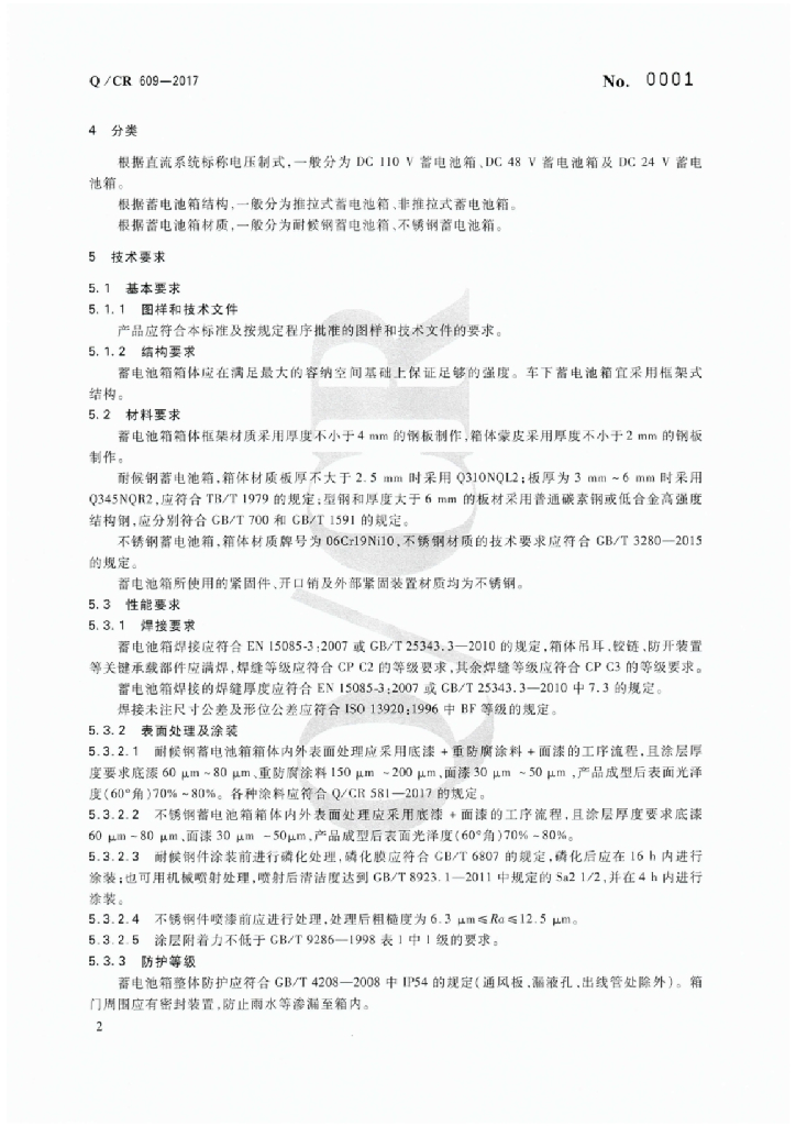 Q/CR 609-2017 铁路客车蓄电池箱技术条件