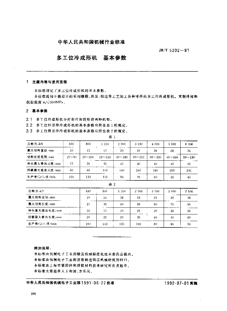 JB/T 5202-1991 多工位冷成形机 基本参数