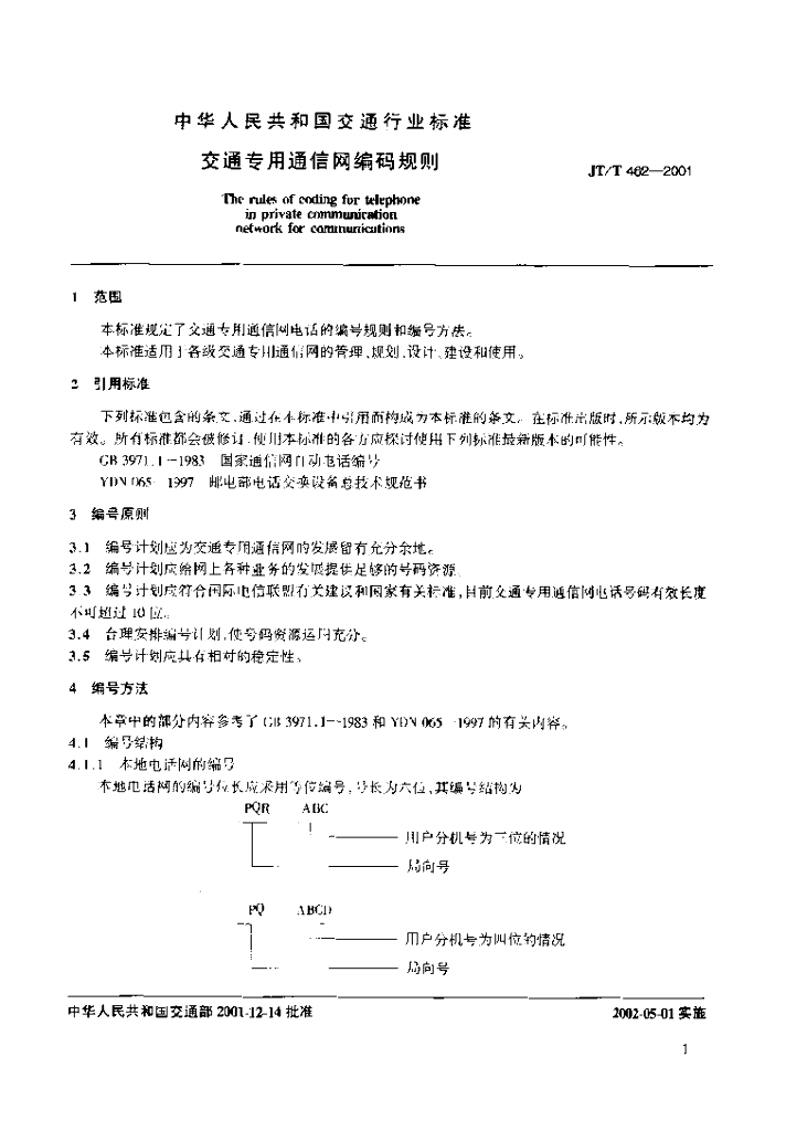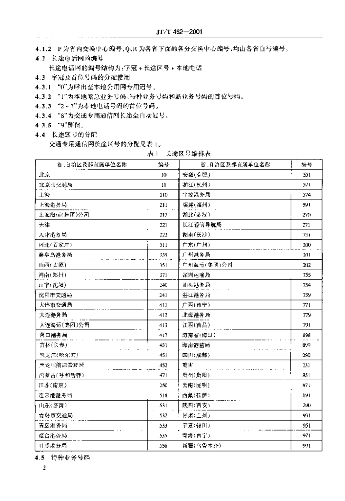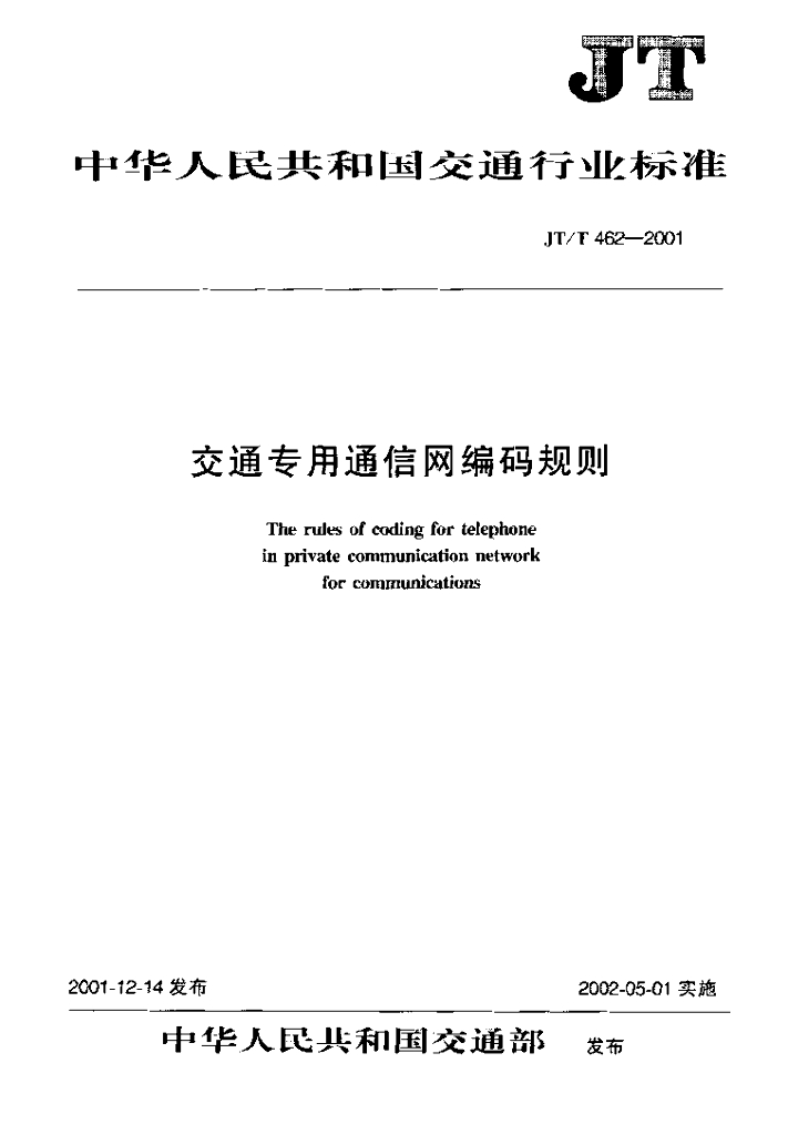 JT/T 462-2001 交通专用通信网编码规则