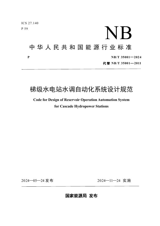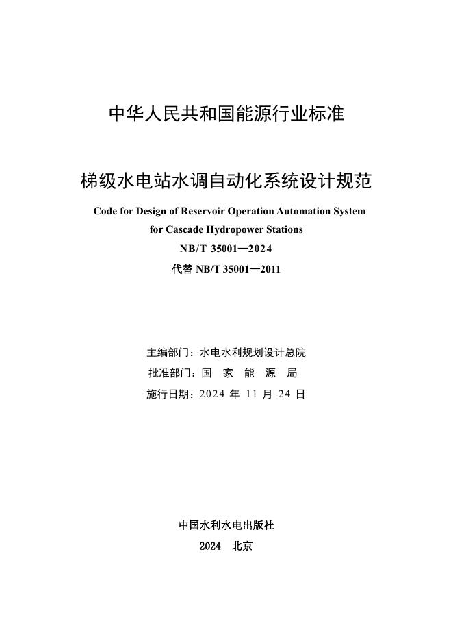 NB/T 35001-2024 梯级水电站水调自动化系统设计规范