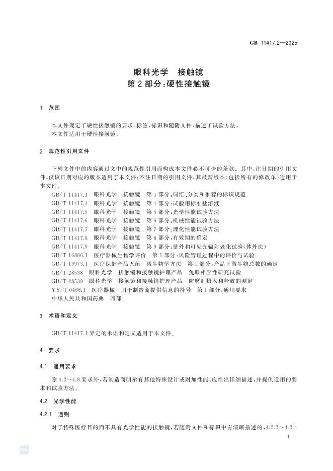 GB 11417.2-2025 眼科光学 接触镜 第2部分:硬性接触镜