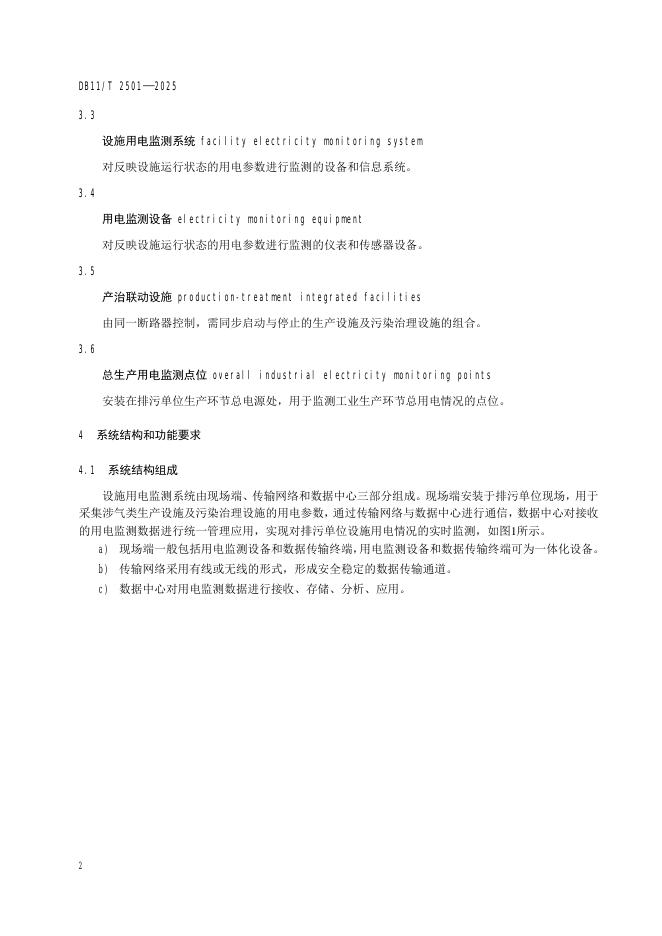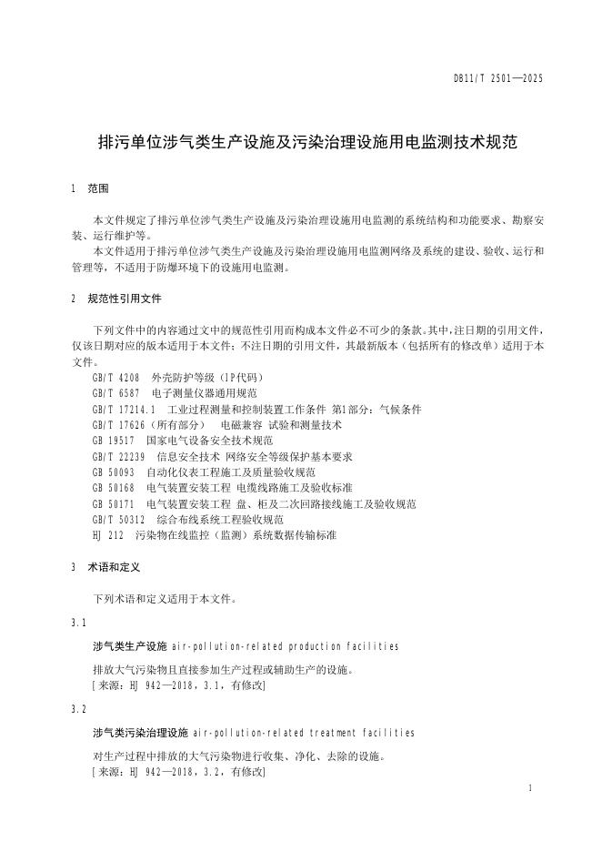 DB11/T 2501-2025 排污单位涉气类生产设施及污染治理设施用电监测技术规范