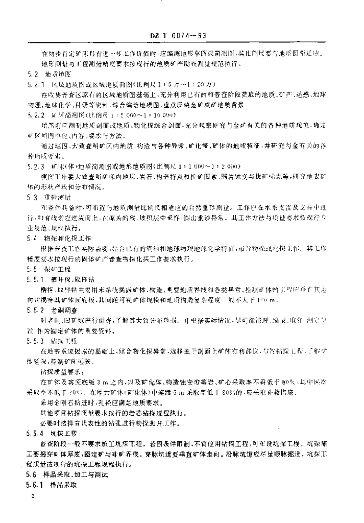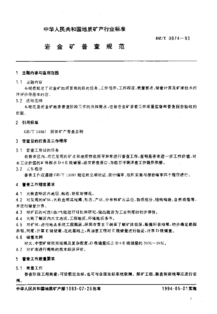 DZ/T 0074-1993 岩金矿普查规范