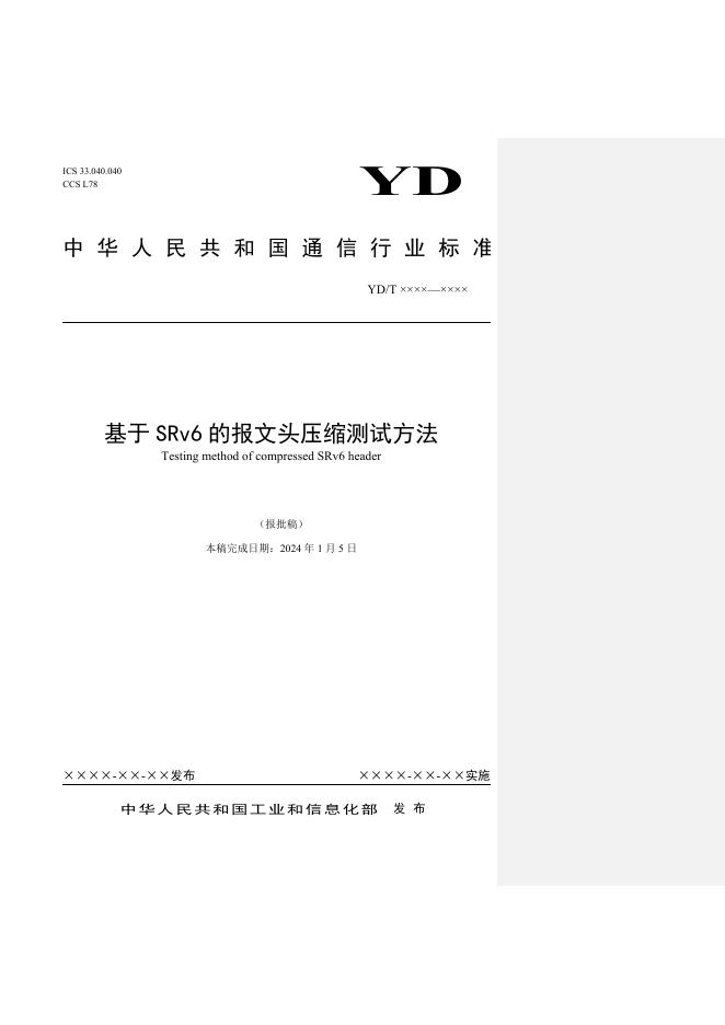 YD/T 6055-2024 基于SRv6的报文头压缩测试方法