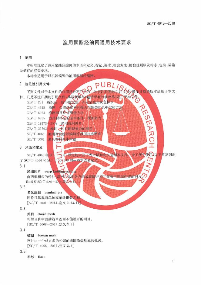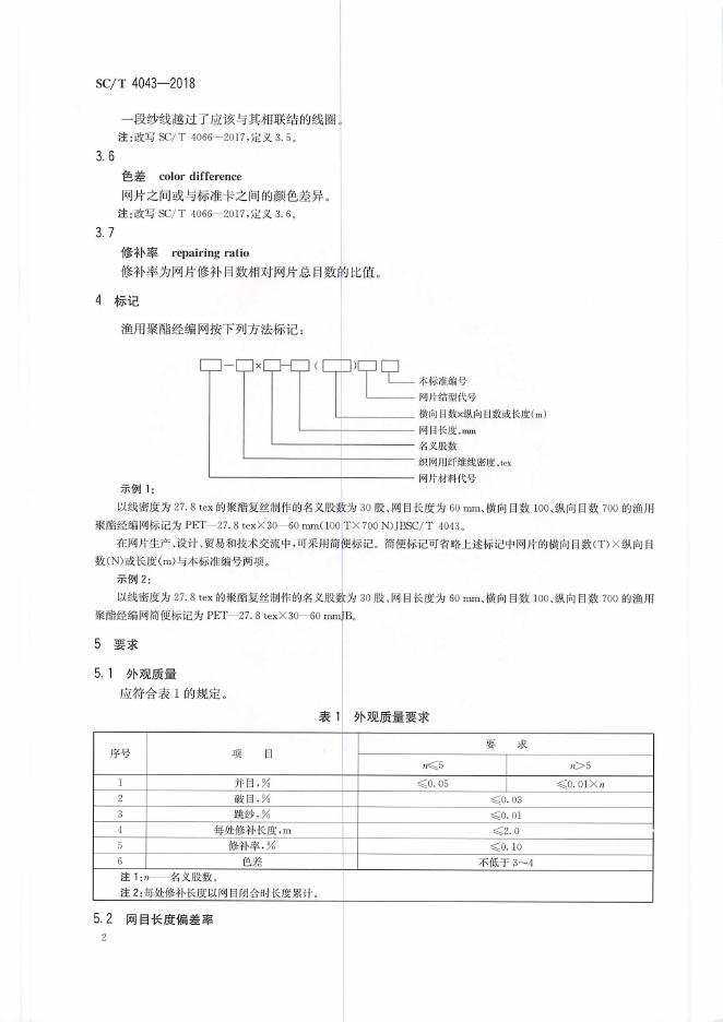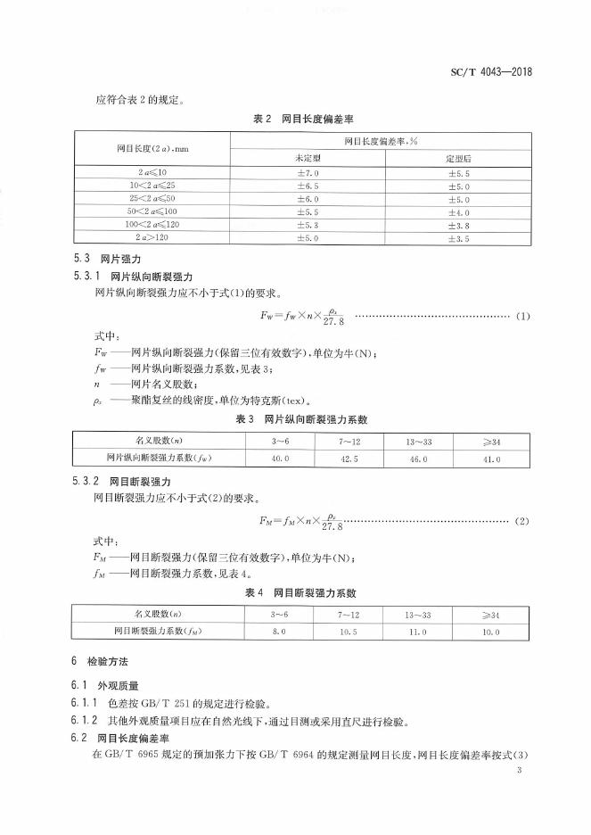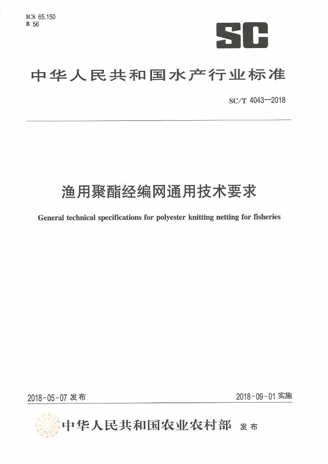SC/T 4043-2018 渔用聚酯经编网通用技术要求