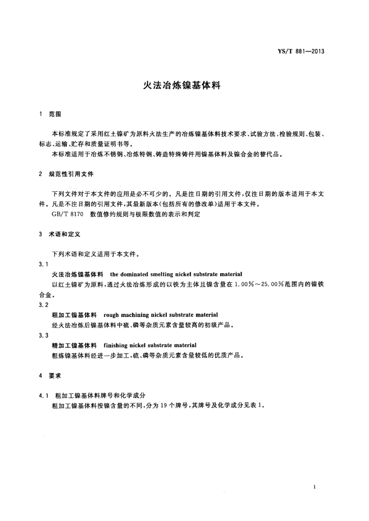 YS/T 881-2013 火法冶炼镍基体料