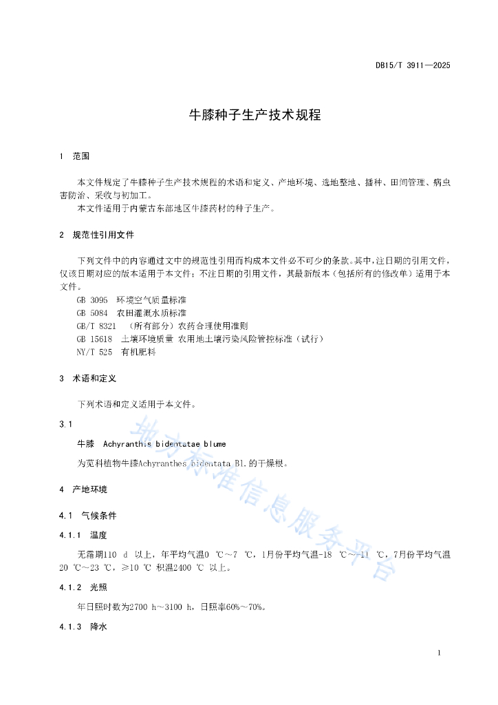 DB15/T 3911-2025 牛膝种子生产技术规程