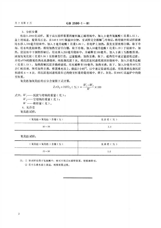 GB/T 2590.1-1981 氧化锆、氧化铪中氧化锆和氧化铪含量的测定 苦杏仁酸重量法