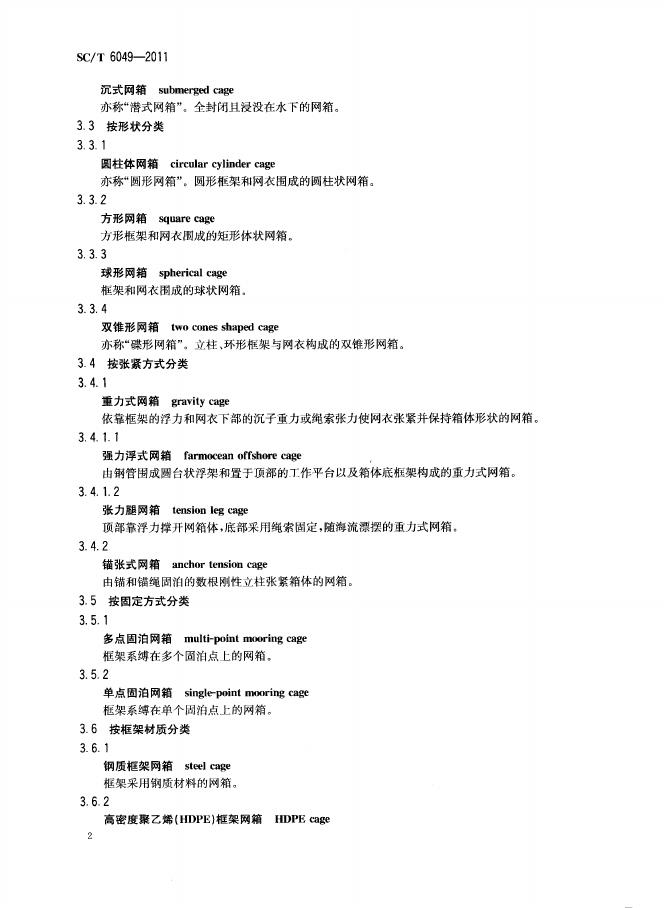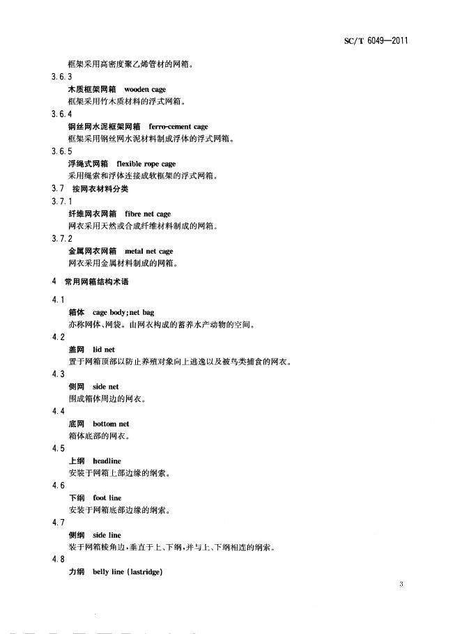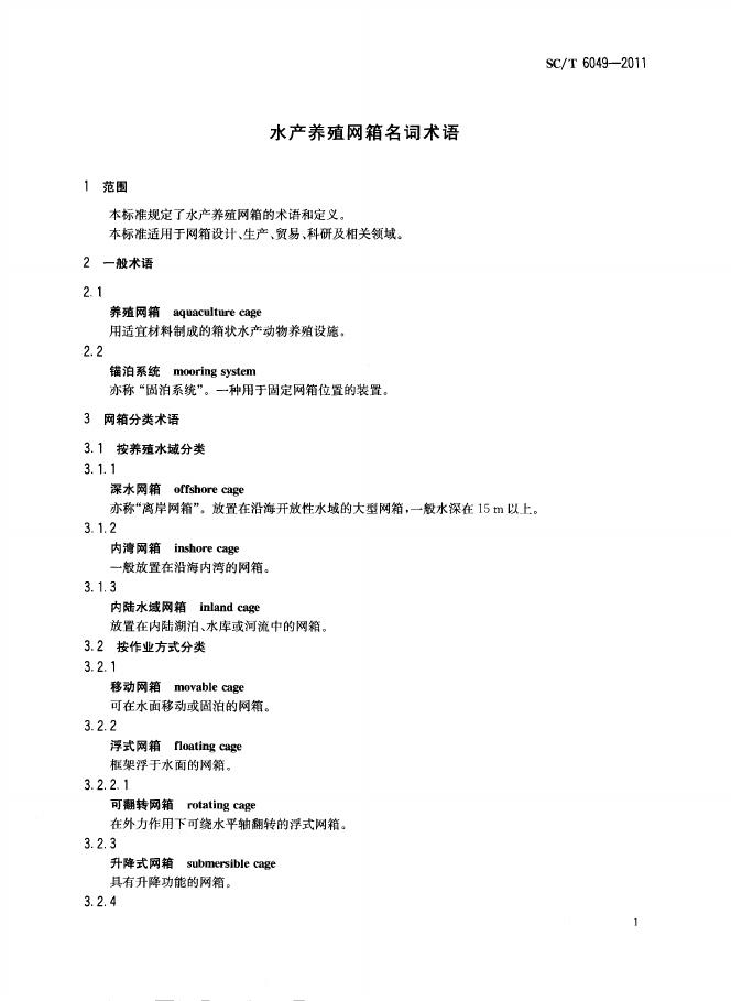 SC/T 6049-2011 水产养殖网箱名词术语