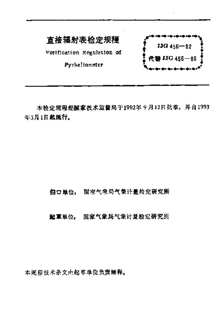 - 代替标准:JJG 456-1986
