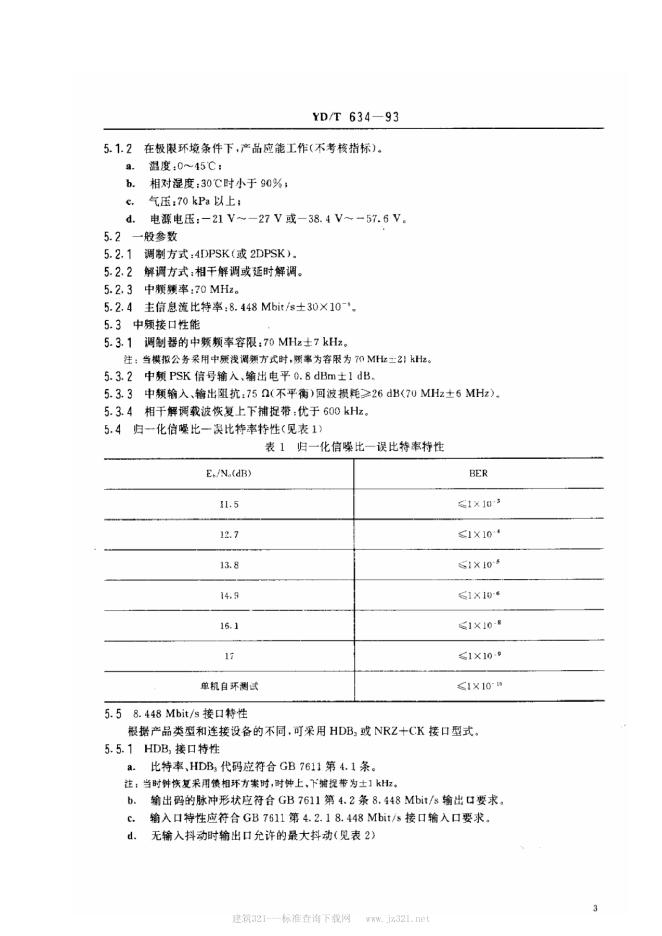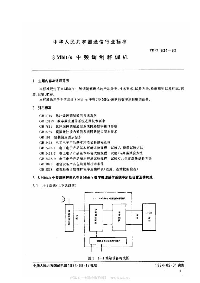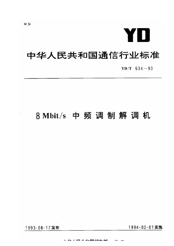 YD/T 634-1993 8 Mbit/s 中频调制解调机