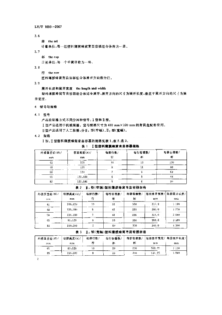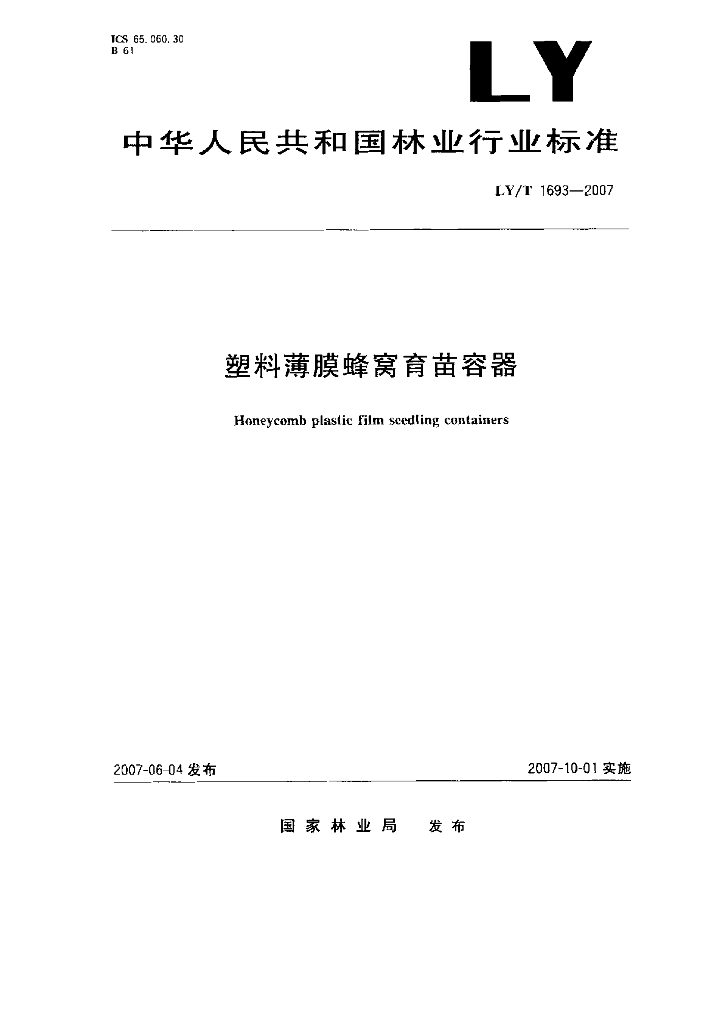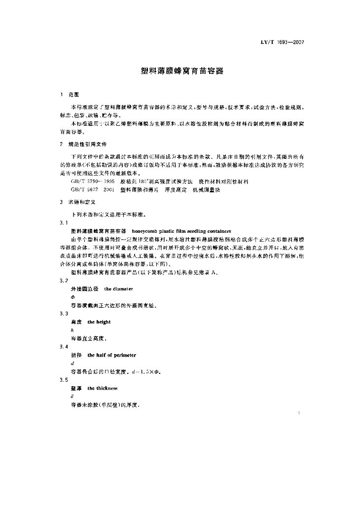 LY/T 1693-2007 塑料薄膜蜂窝育苗容器
