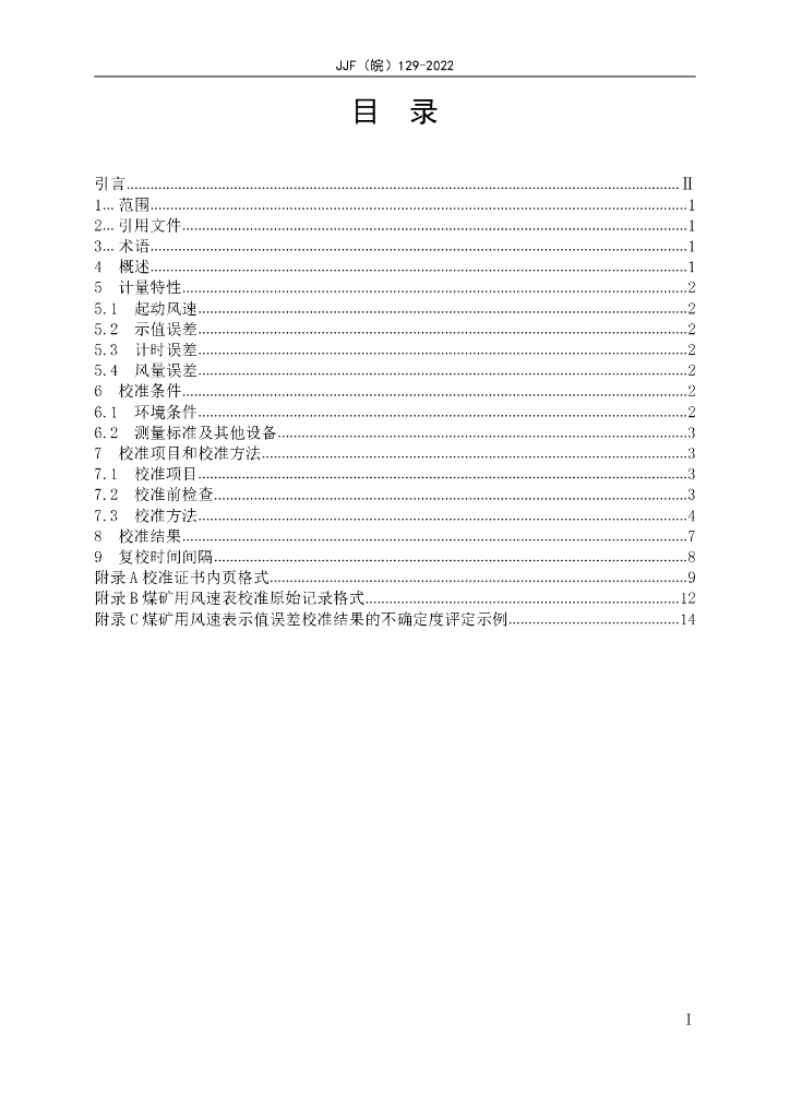 JJF(皖)129-2022 煤矿用风速表校准规范