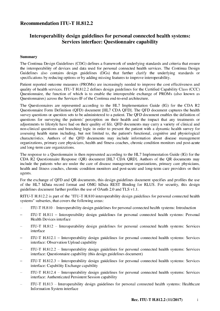 ITU-T H.812.2-2017 医疗卫生系统个人连接互操作性设计指南 服务接口 问卷调查功能