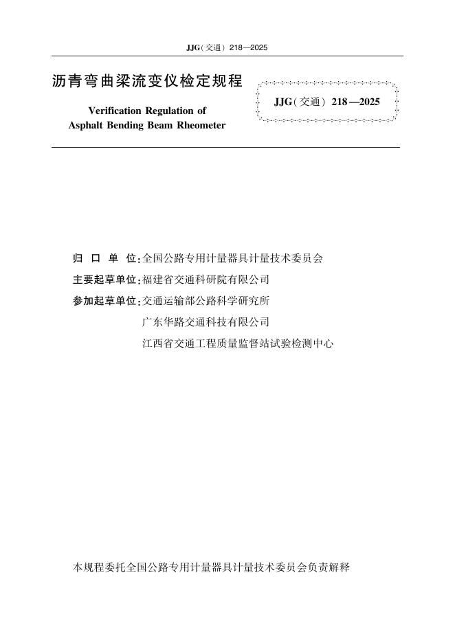 JJG(交通)218-2025 沥青弯曲梁流变仪