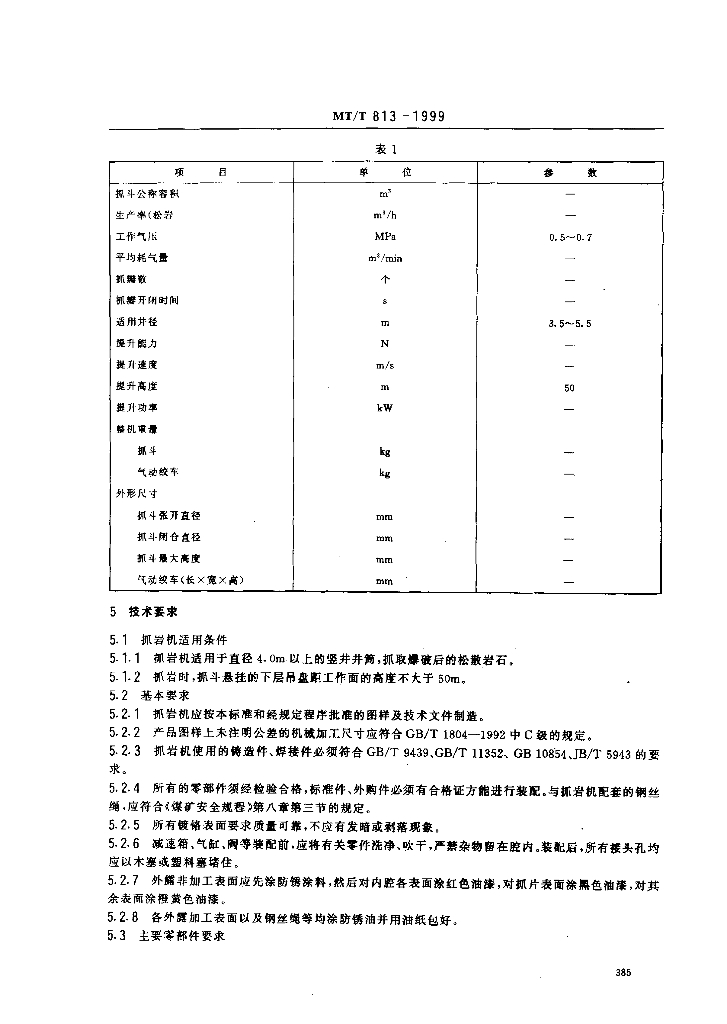 MT/T 813-1999 井内悬吊式气动抓岩机通用技术条件