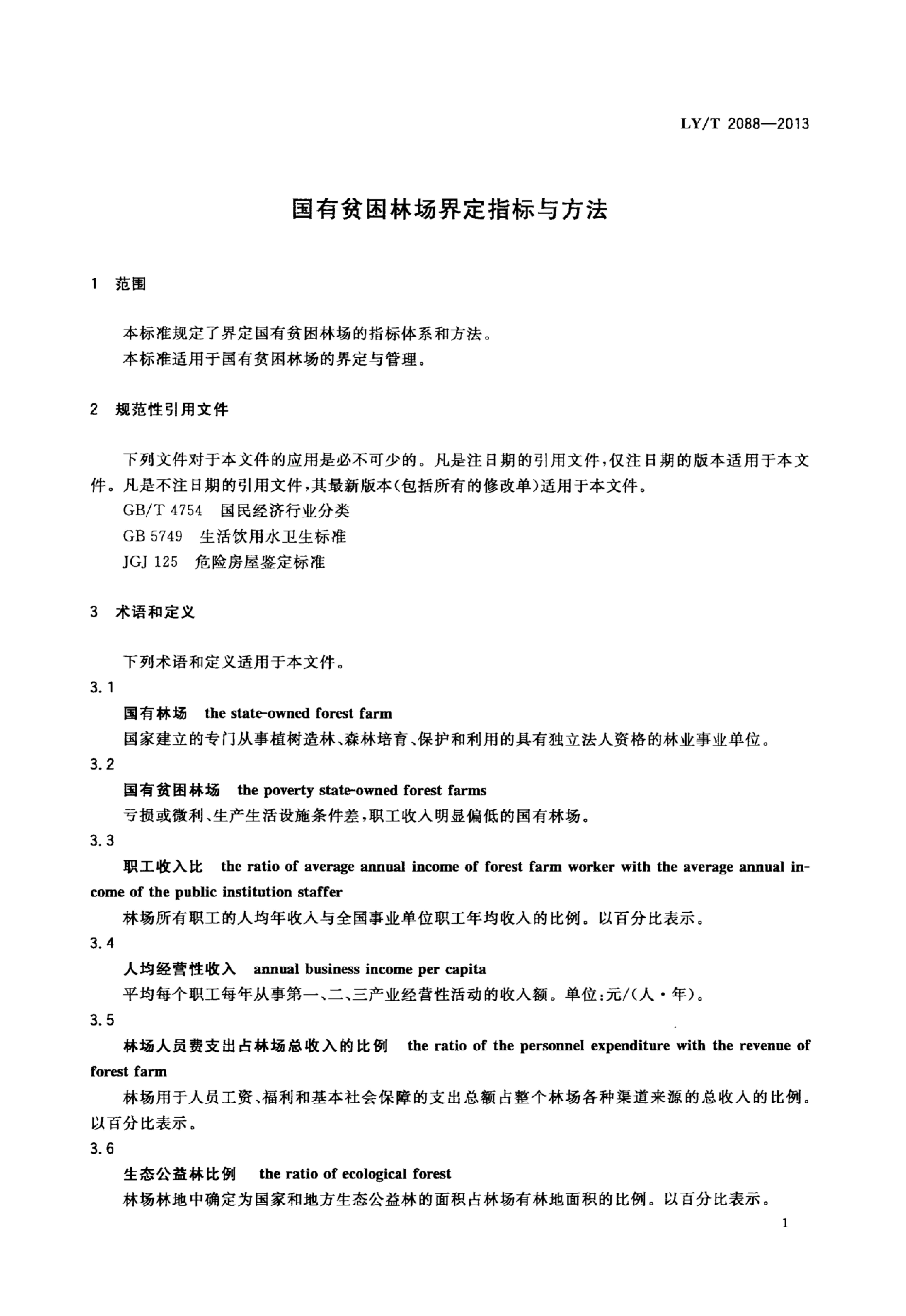 LY/T 2088-2013 国有贫困林场界定指标与方法