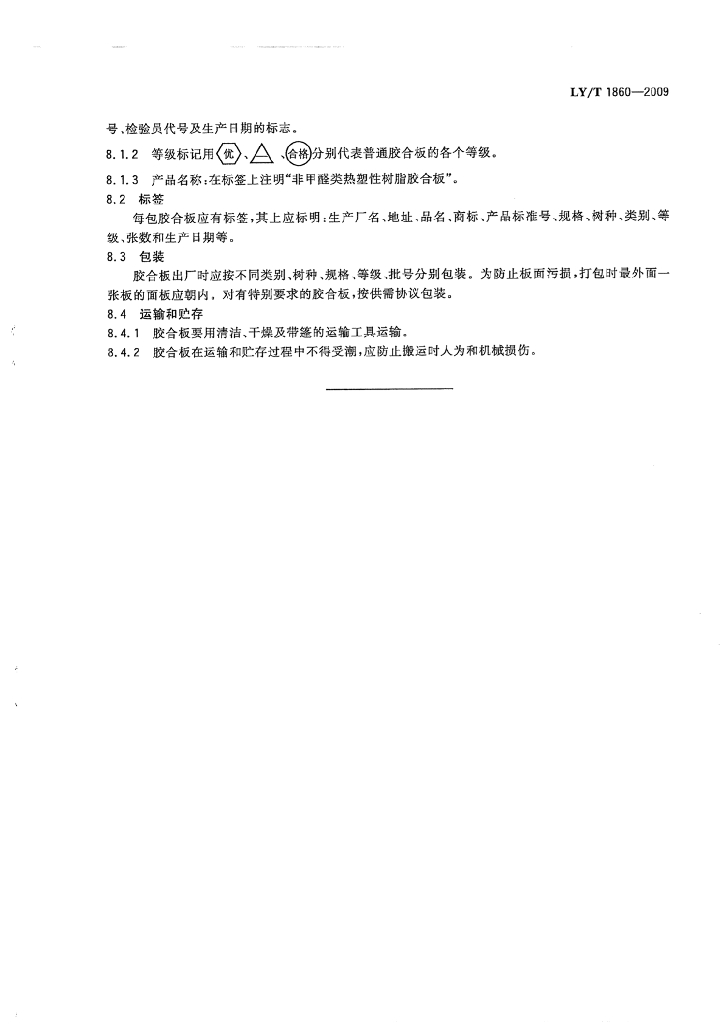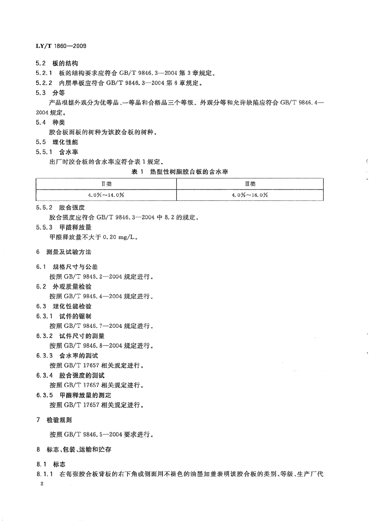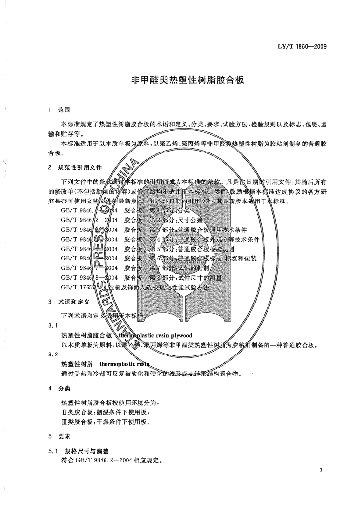 LY/T 1860-2009 非甲醛类热塑性树脂胶合板