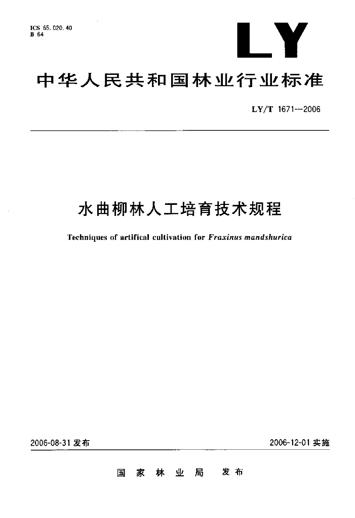 LY/T 1671-2006 水曲柳林人工培育技术规程