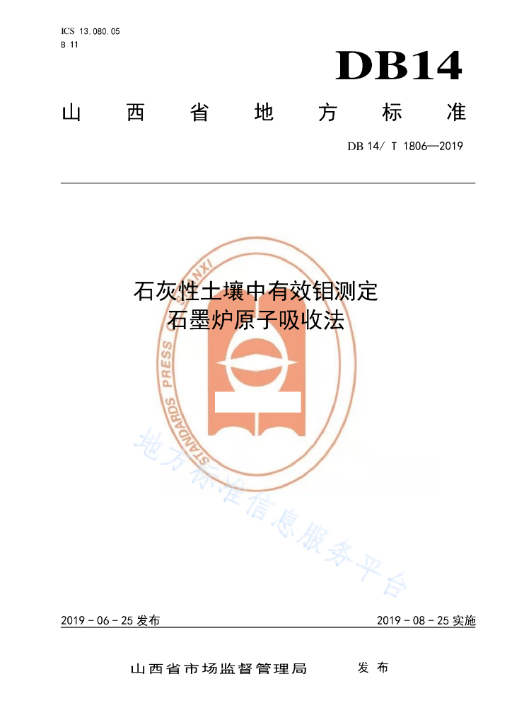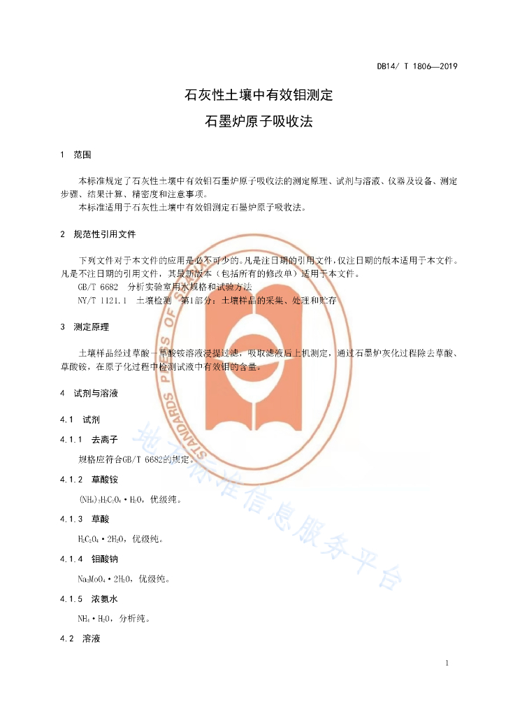 DB14/T 1806-2019 石灰性土壤中有效钼测定石墨炉原子吸收法