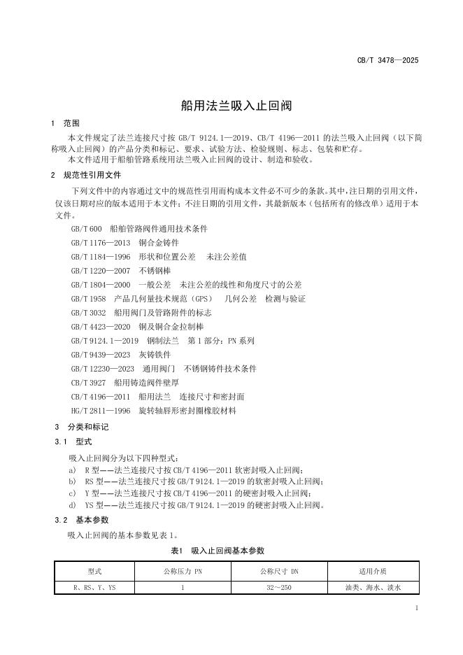 CB/T 3478-2025 船用法兰吸入止回阀