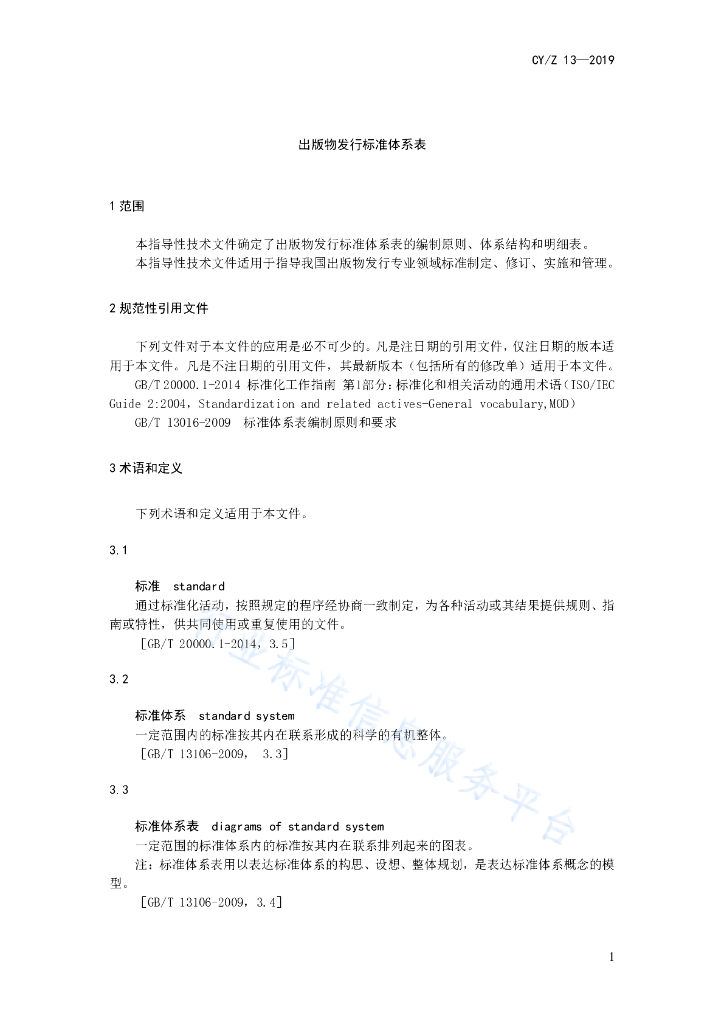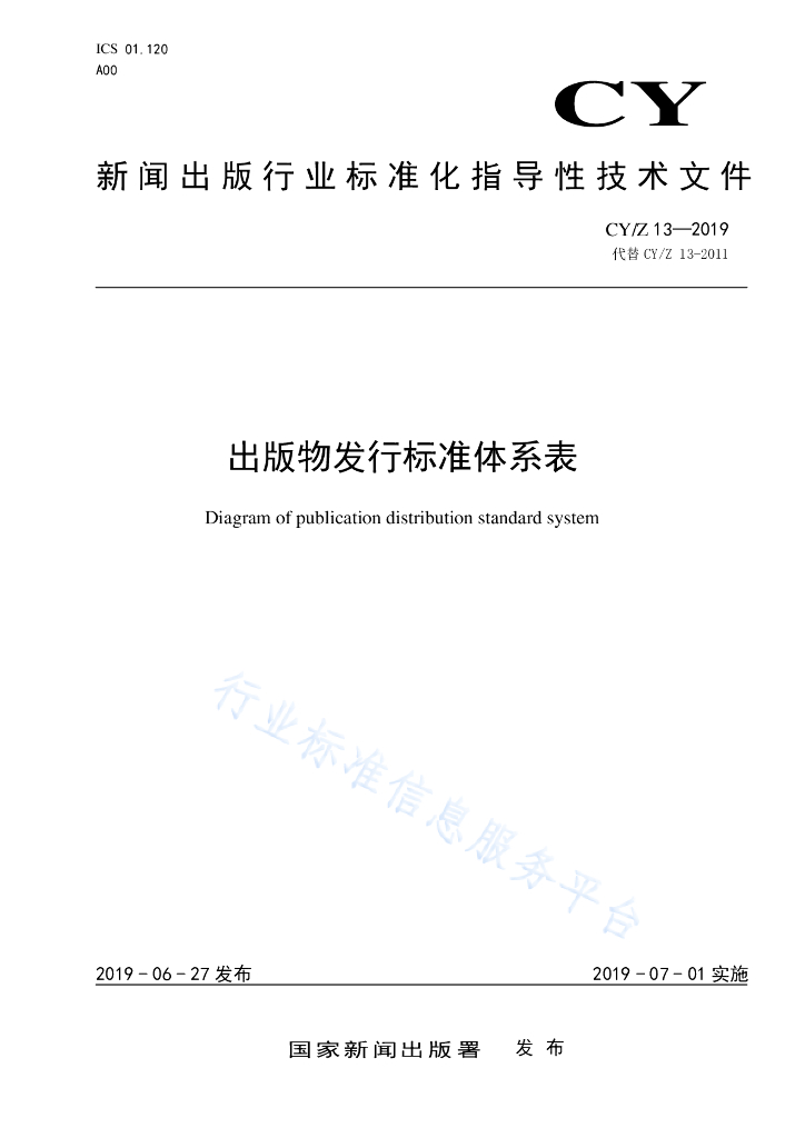 CYZ 13-2019 出版物发行标准体系表
