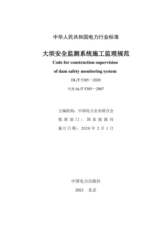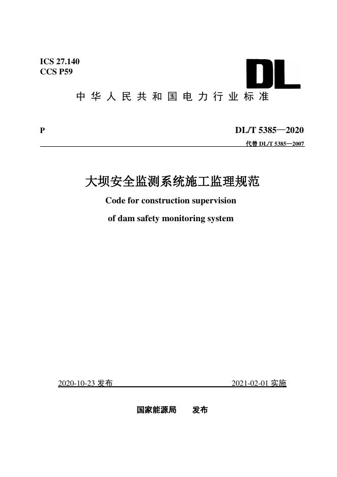- 代替标准:DL/T 5385-2007