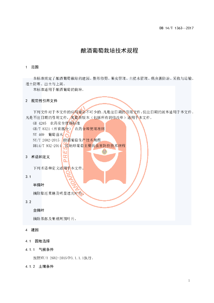 DB14/T 1363-2017 酿酒葡萄栽培技术规程