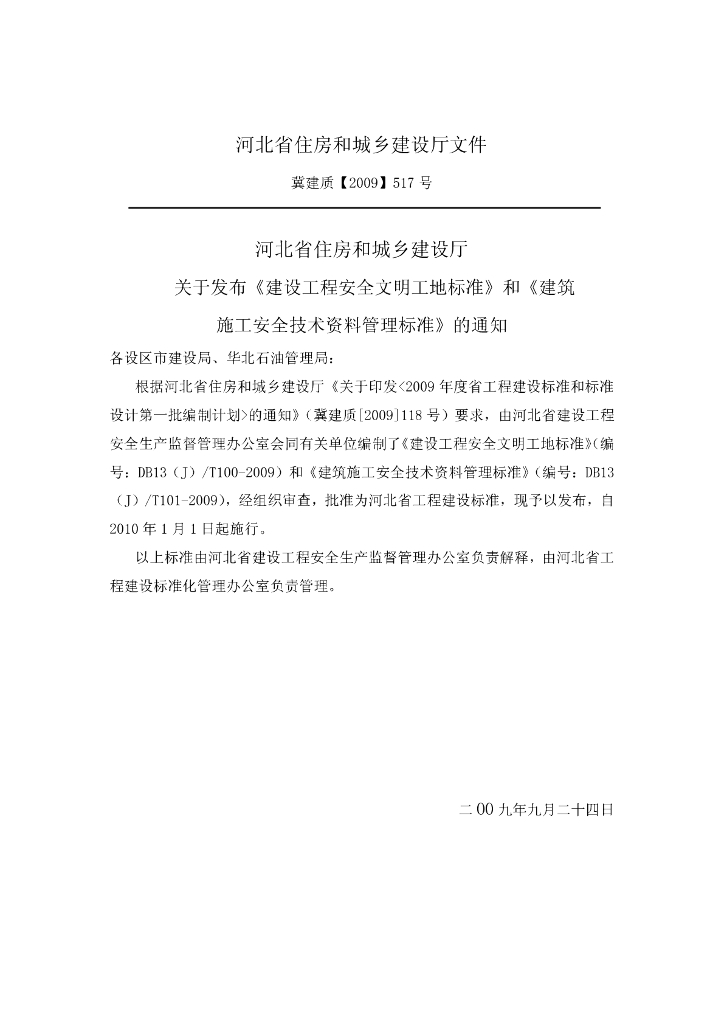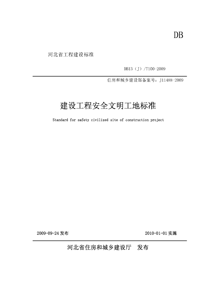 DB13(J)/T 100-2009 建设工程安全文明工地标准