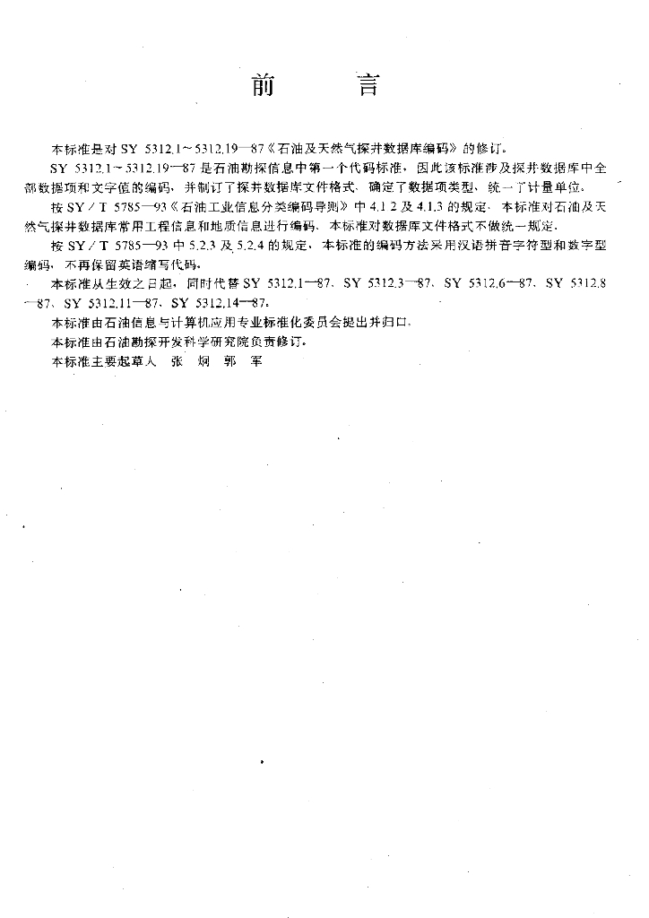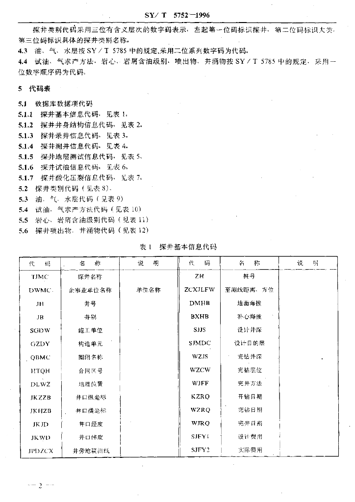 SY/T 5752-1996 石油及天然气探井信息代码