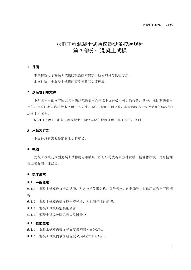 NB/T 11889.7-2025 水电工程混凝土试验仪器设备校验规程 第7部分:混凝土试模