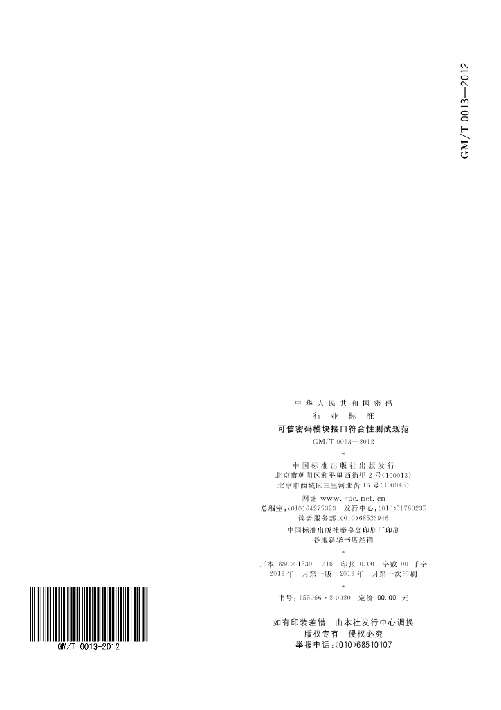 GM/T 0013-2012 可信计算 可信密码模块符合性检测规范