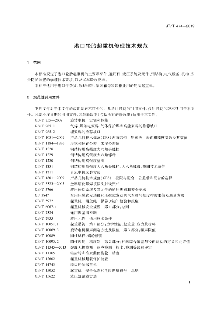 JT/T 474-2019 港口轮胎起重机修理技术规范